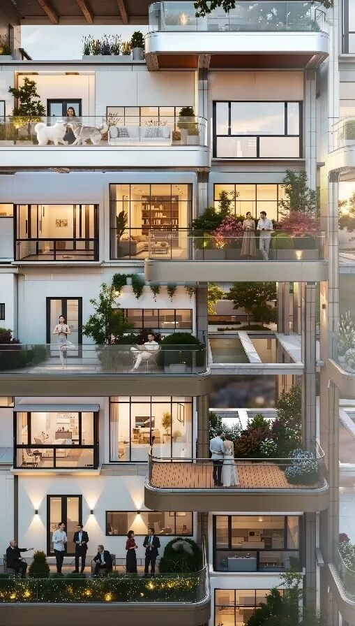 我們相信,好房子不僅關乎室內,更關乎社區(qū)。在標準層,我們設置了戶外共享花園。配合景觀螺旋梯貫通上下樓層,打破了傳統(tǒng)住宅樓層間的絕對封閉。鄰里間在這里可以實現(xiàn)“拜訪不入戶,串門不打擾”,在增加空間趣味性的同時,有效增進了鄰里感情,構建和諧溫暖的社區(qū)氛圍。